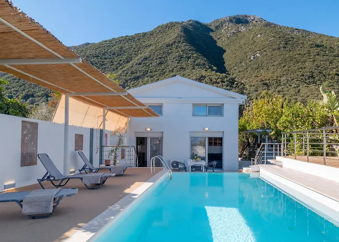 Situata a 450 m dal Monastero di Ag. Pateres, la Brand New Exclusive Villa Lefkada Nikiana, dispone di una terrazza con vista sul mare. Offrendo una vista una piscina all'aperto, questa villa con 3 camere da letto invita gli ospiti a visitare la Spiaggia di Lygiá, situata a circa 2 km.